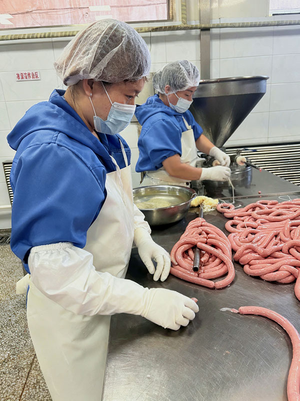 腌制环节彰显工艺精髓,也是君喜香肠风味独特的核心所在。不同于普通香肠的简单调味,君喜香肠沿用传承数十年的配方,搭配花椒、八角等天然香料,拒绝添加多余防腐剂与添加剂,遵循传统调味技艺,将调料与切好的肉块充分搅拌,确保每一块肉都均匀裹上调料,再放入专用腌制间低温腌制。腌制间严格控制温度不高于4℃,配备专业温度监控设备,根据肉质特性把控腌制时间,让香料风味慢慢渗透肌理,同时借助低温环境锁住肉汁与营养,形成咸淡适中、鲜香醇厚的独特口感。